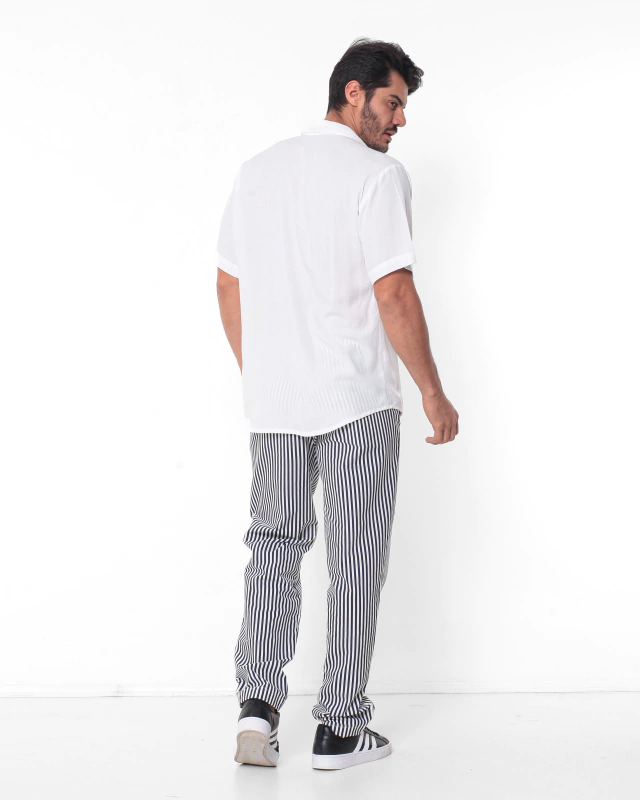Calça Linho Alfaiataria Listrada Preto MH