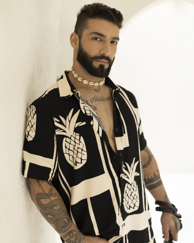 Camisa Viscolinho Summer Abacaxi Preta MH