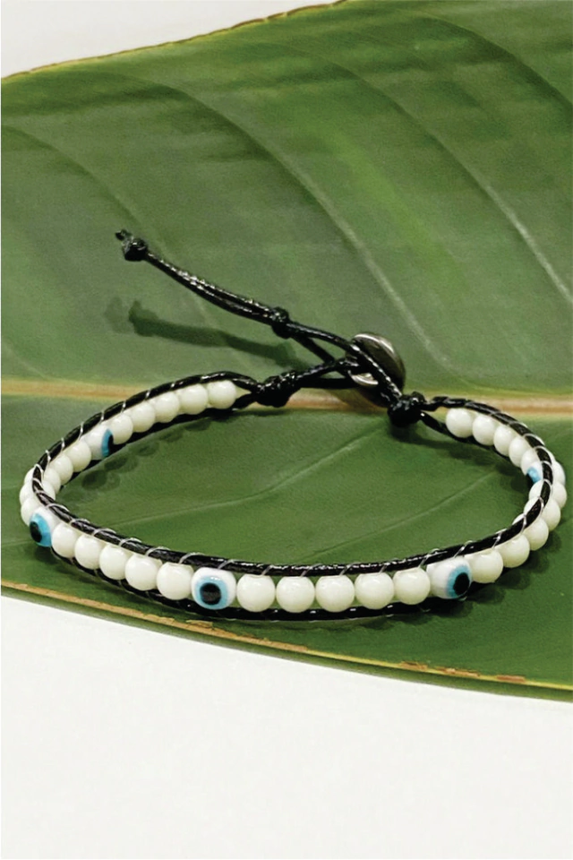 Pulseira em linha encerada de alta resistência, linha transparete, resina e fecho em metal.