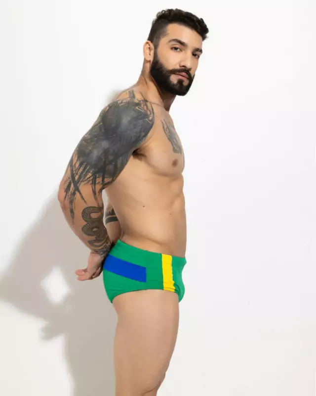 A sunga foi desenvolvida em Meryl, um tecido que gera conforto pelo seu toque extra-macio. Além disso, deixa o corpo transpirar e por isso não dá cheiro.